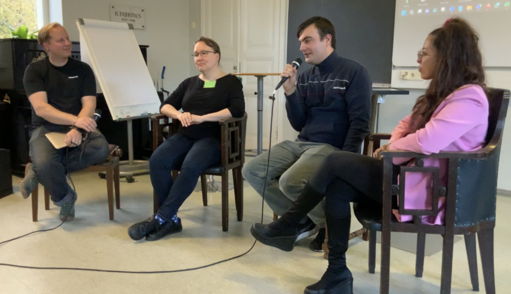 Työllisyyspaneeli: Antti Haltiamieli, Minna Brockmann, Antti Sleki ja Cheyenne Järvinen
