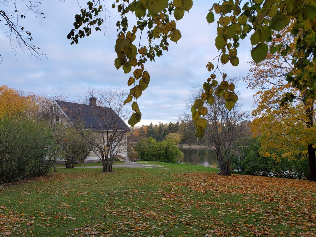 Omenapuutalo syksyisen puiston keskellä
